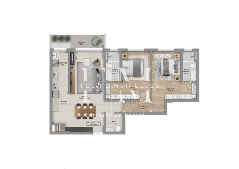 Área Privativa › 97,72m²