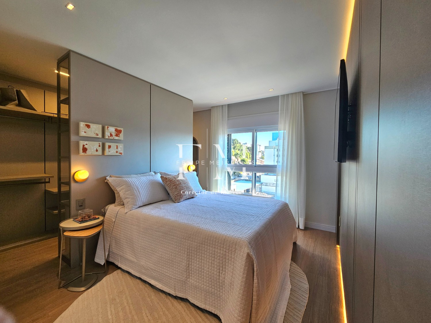 Descrição › Apartamento mobilado e decorado, com 3 dormitórios sendo todos suíte, no Centro de Bento Gonçalves.